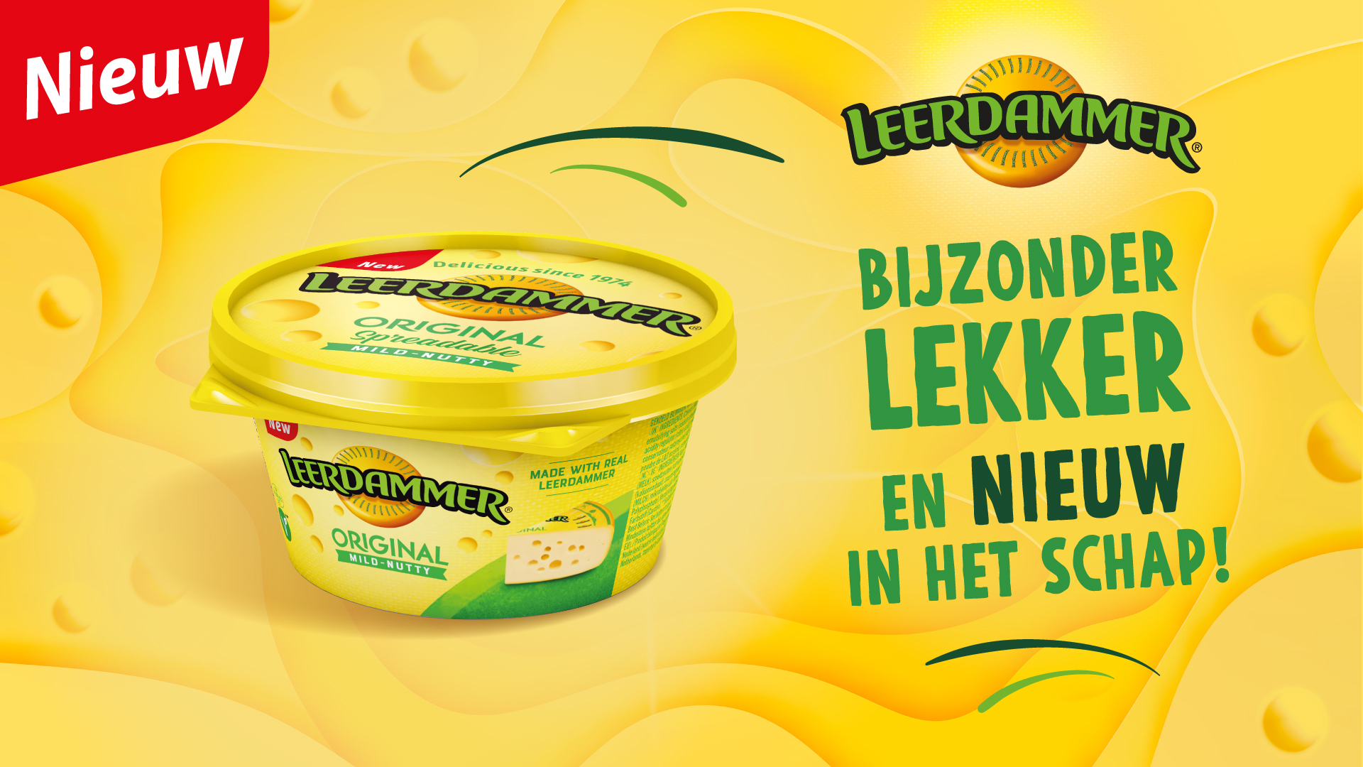 Miljoenen consumenten over de hele wereld zijn dol op Leerdammer, de eigenzinnige gatenkaas met een romige textuur en een unieke smaak: mild, nootachtig met een vleugje zoet. Het merk presenteert zich op haar eigen wijze, altijd een tikkeltje excentriek. Met de gele kleur is het merk opvallend in de winkelschappen. Het merk is in staat om mee te bewegen met de wensen van de consument, is gemaakt van hoogwaardige koemelk en staat voor kwaliteit en innovatie, te danken aan het vakmanschap van de melkveehouders en medewerkers.